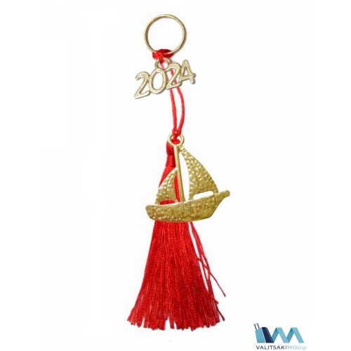 Γούρι Χριστουγεννιάτικο 2024, από μέταλλο, καραβάκι με σκάλισμα "Καλή Τύχη" & διακοσμητική φούντα. ..