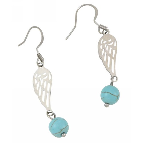 Σκουλαρίκια Με μοτίφ Ατσάλι Με μοτίφ φτερό+τιρκουάζ ..
