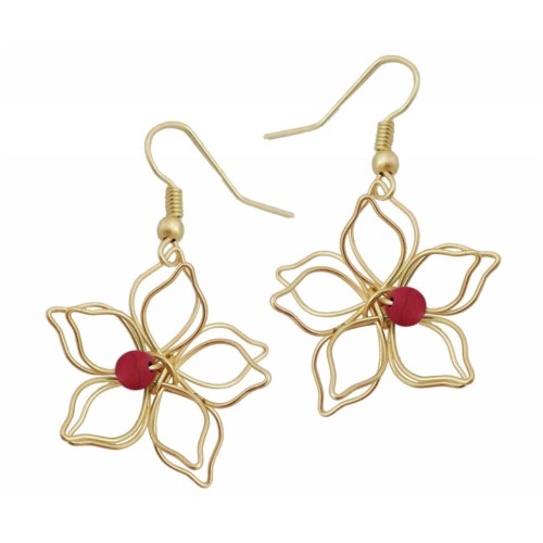 Σκουλαρίκια Κοραλί Πέτρα Φύση Λουλούδι iron+powder stone kc gold..