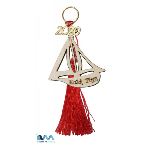 Γούρι Χριστουγεννιάτικο 2024 ξύλινο Καραβάκι με ευχή "Καλή Τύχη" & διακοσμητική φούντα. |Η συσκευα..