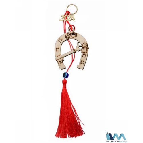Γούρι Χριστουγεννιάτικο 2024 ξύλινο Πέταλο με κλειδί & διακοσμητική φούντα με ακρυλικό ματάκι. |Η ..