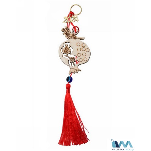 Γούρι Χριστουγεννιάτικο 2024 ξύλινο Ρόδι με διακοσμητική φούντα. |Η συσκευασία περιέχει 12 τεμάχια|..
