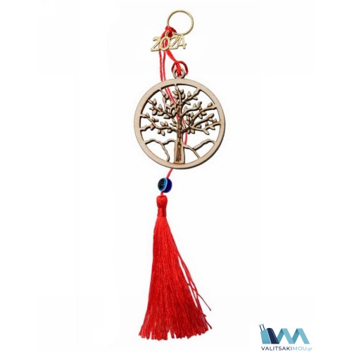 Γούρι Χριστουγεννιάτικο 2024 ξύλινο Δέντο της ζωής με διακοσμητική φούντα. |Η συσκευασία περιέχει..