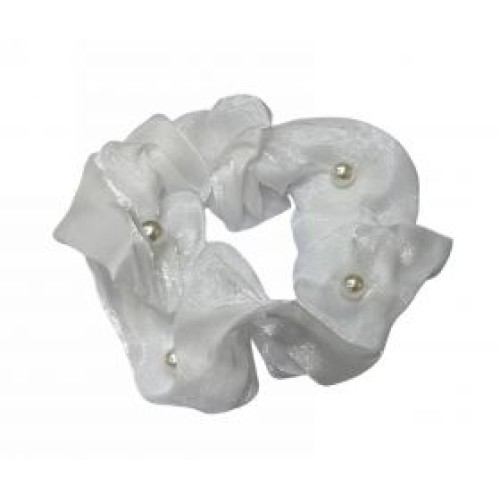 Kostibas 4771-904L, Λαστιχάκια Σουράκια Μαλλιών, Ύφασμα, Πέρλα, Λευκό