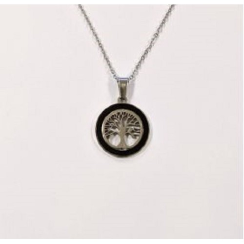 Kostibas 1013-820AM, Κολιέ, Ατσάλι, Με μοτίφ, Ασημί/Μαύρο