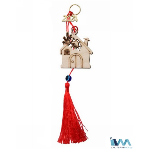 Γούρι Χριστουγεννιάτικο 2024 ξύλινο Σπιτάκι με ρόδι & διακοσμητική φούντα. |Η συσκευασία περιέχει ..