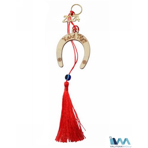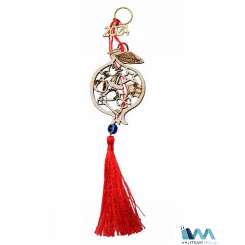 Γούρι Χριστουγεννιάτικο 2024 ξύλινο Ρόδι με ευχή "Καλή Τύχη" & διακοσμητική φούντα. |Η συσκευασία ..