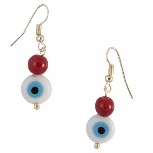 Σκουλαρίκια Μάτι Μάτι Με στρόγγυλη χάντρα κόκκινο ..