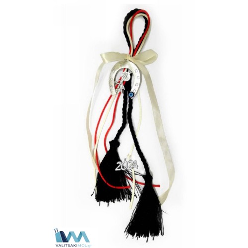 Γούρι Χριστουγεννιάτικο 2024 από μέταλλο Πέταλο με μάτι, μαύρη φούντα & λευκή κορδέλα. Προσοχή Μόν..