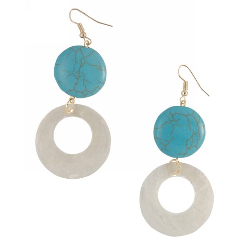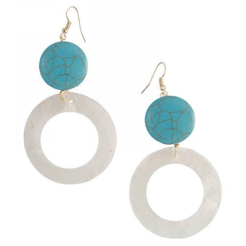 Σκουλαρίκια Κοχύλι Κοχύλι Στρόγγυλο με οπή + στρόγγυλη τυρκουάζ πλακέ..