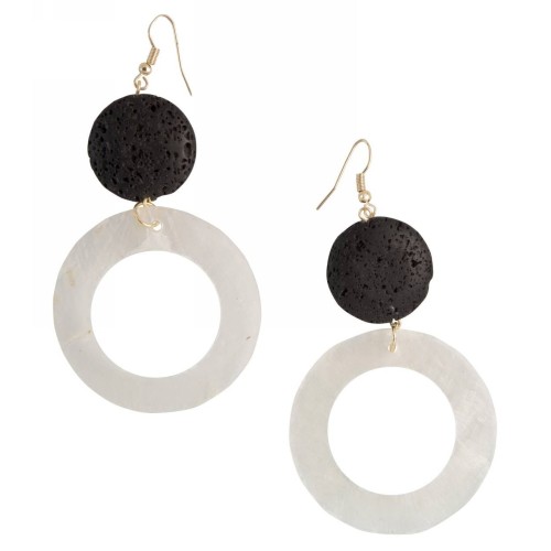 Σκουλαρίκια Κοχύλι Κοχύλι Στρόγγυλο με οπή + στρόγγυλη λάβα πλακέ..