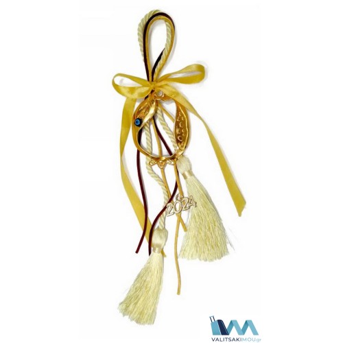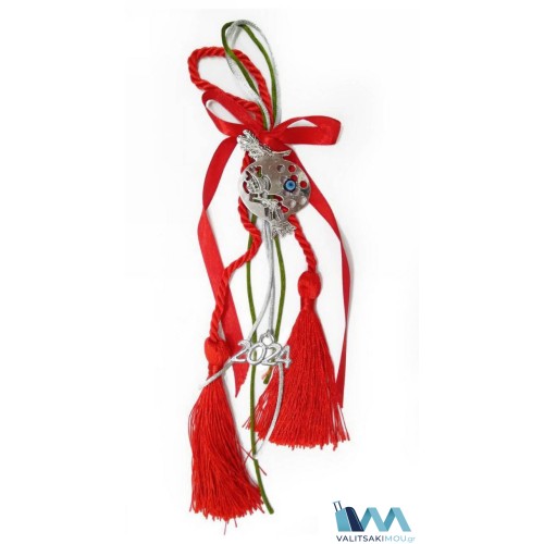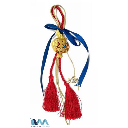 Γούρι Χριστουγεννιάτικο 2024 από μέταλλο Μεγάλο Ρόδι με μάτι, κόκκινη φούντα & μπλε κορδέλα. Προσοχ..