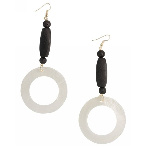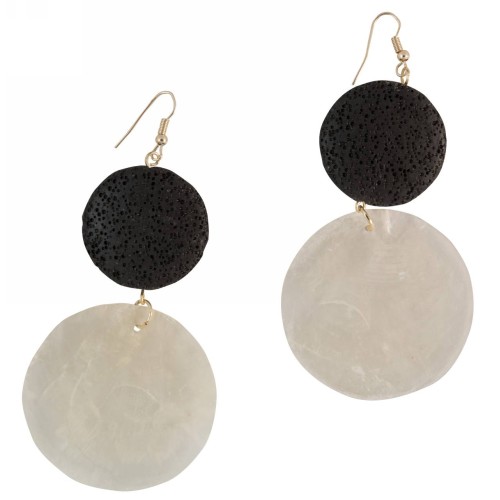 Σκουλαρίκια Κοχύλι Κοχύλι Με ξύλινο μοτίφ σε ακανόνιστο σχήμα + λάβα 6mm..