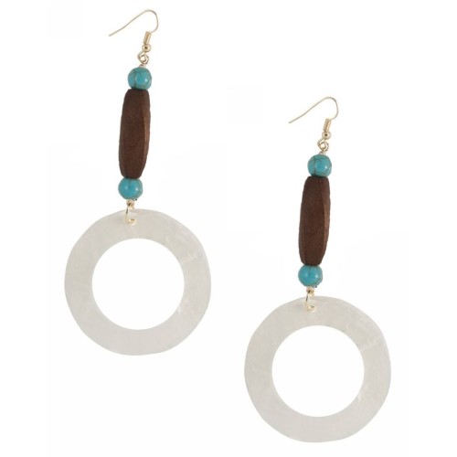 Σκουλαρίκια Κοχύλι Κοχύλι Με ξύλινο μοτίφ σε ακανόνιστο σχήμα + τιρκουάζ 6mm ..