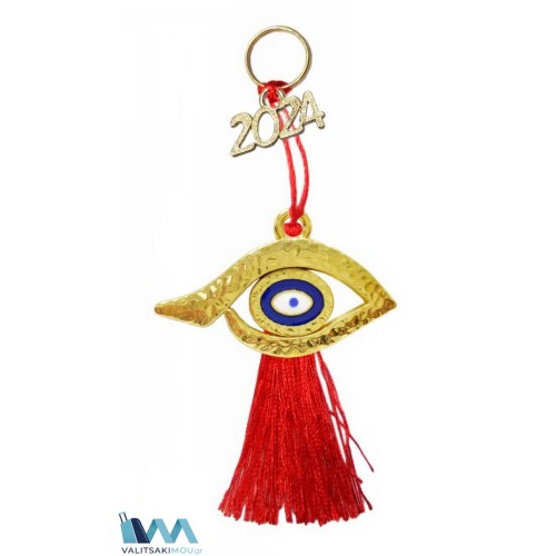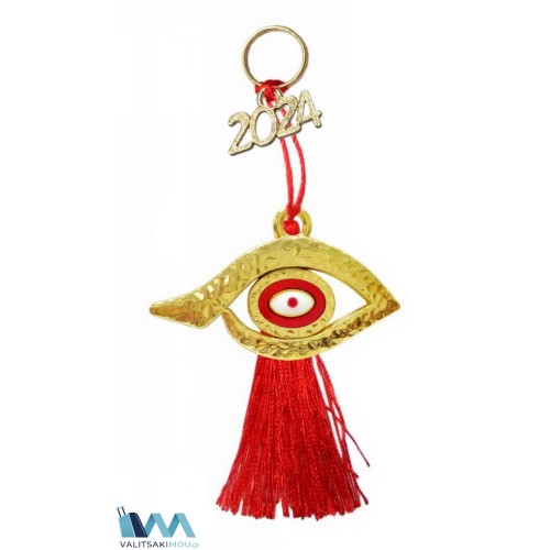 Γούρι Χριστουγεννιάτικο 2024, από Σμάλτο, Μάτι με κόκκινη φούντα. Προσοχή Μόνο διακοσμητικά περιέχ..