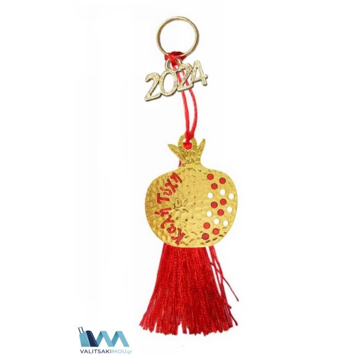 Γούρι Χριστουγεννιάτικο 2024, από Σμάλτο, Ρόδι με πέταλο, κόκκινη φούντα & κόκκινη κορδέλα. Προσοχή..