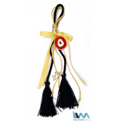 Γούρι Χριστουγεννιάτικο 2024, από Σμάλτο, μικρός κύκλος Μάτι με μαύρη φούντα & χρυσή κορδέλα. Προσο..
