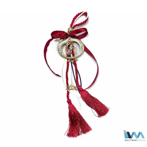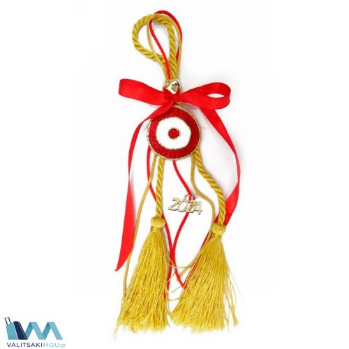 Γούρι Χριστουγεννιάτικο 2024, από Σμάλτο, Μεγάλος κύκλος Μάτι με κίτρινη φούντα & κόκκινη κορδέλα. ..