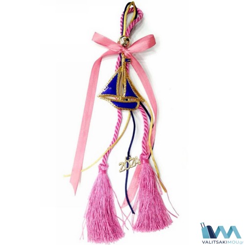 Γούρι Χριστουγεννιάτικο 2024, από Σμάλτο, Καραβάκι με ροζ φούντα & ροζ κορδέλα. Προσοχή Μόνο διακο..