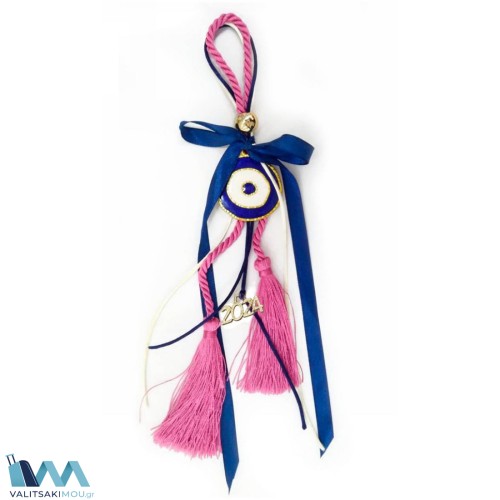 Γούρι Χριστουγεννιάτικο 2024, από Σμάλτο, Μεγάλος κύκλος Μάτι με ροζ φούντα & μπλε κορδέλα. Προσοχή..