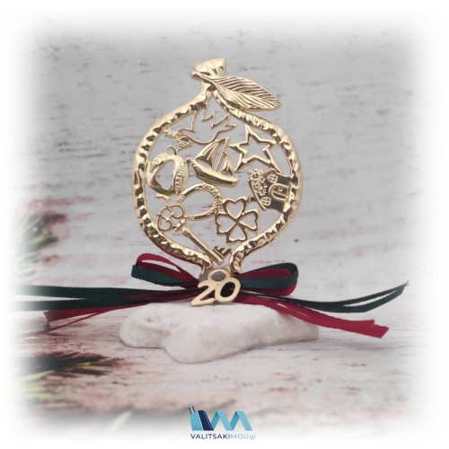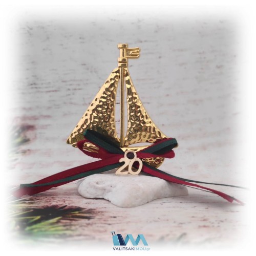 Χριστουγεννιάτικο Γούρι, από Πέτρα ρυτίνη. Καραβάκι μεταλλικό, διπλής όψεως, με φίογκο και χρονιά σ..
