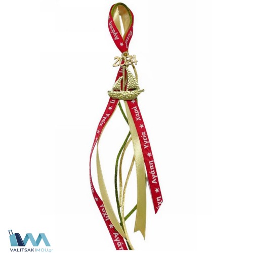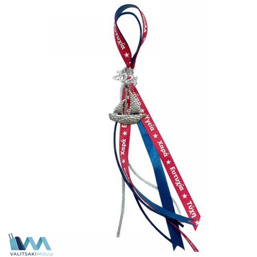 Γούρι Χριστουγεννιάτικο 2024, από Μέταλλο,Μικρό καράβι με κορδέλα με ευχές. Προσοχή Μόνο διακοσμητ..
