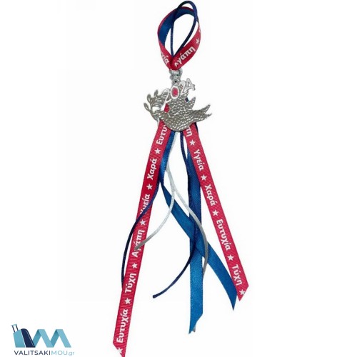 Γούρι Χριστουγεννιάτικο 2024, από Μέταλλο,Μικρό Περιστέρι Ειρήνης με κορδέλα με ευχές. Προσοχή Μόν..