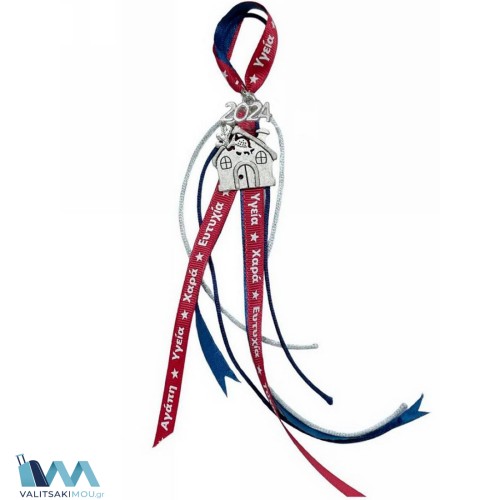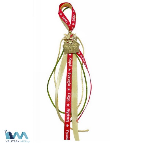 Γούρι Χριστουγεννιάτικο 2024, από Μέταλλο,Μικρό Σπίτι με ρόδι & κορδέλα με ευχές. Προσοχή Μόνο δια..