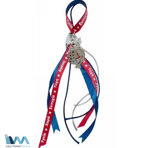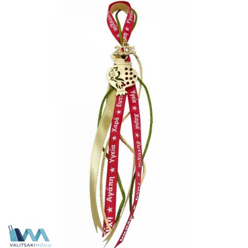 Γούρι Χριστουγεννιάτικο 2024, από Μέταλλο,Μικρό Ρόδι με κορδέλα με ευχές. Προσοχή Μόνο διακοσμητικ..