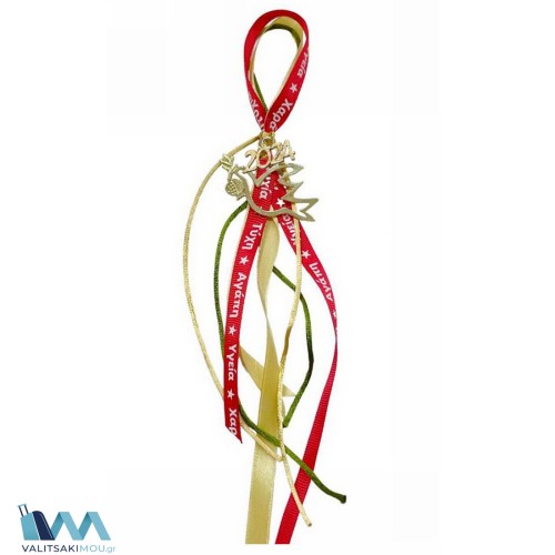 Γούρι Χριστουγεννιάτικο 2024, από Μέταλλο,Μικρό Περιστέρι με ρόδι & κορδέλα με ευχές. Προσοχή Μόνο..