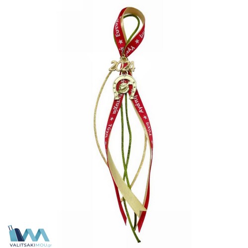 Γούρι Χριστουγεννιάτικο 2024, από Μέταλλο,Μικρό ρόδι με κορδέλα με ευχές. Προσοχή Μόνο διακοσμητικ..