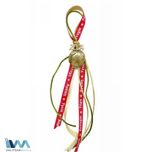 Γούρι Χριστουγεννιάτικο 2024, από Μέταλλο,Μικρό πέταλο με ρόδι & κορδέλα με ευχές. Προσοχή Μόνο δι..