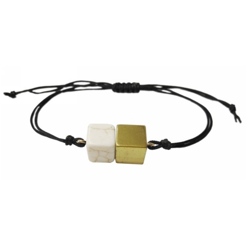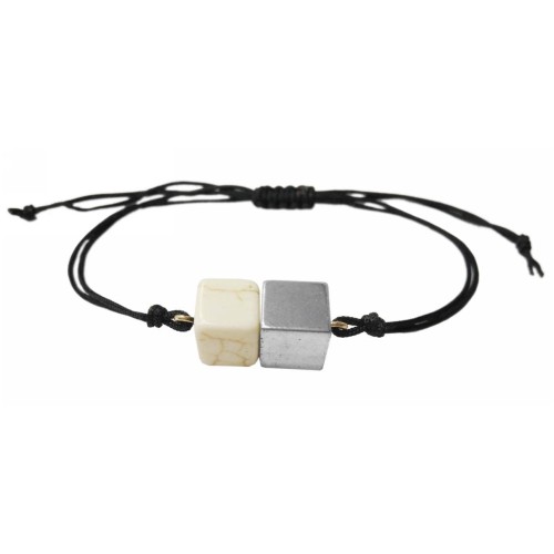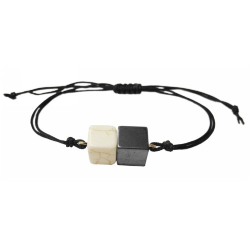 Βραχιόλι Εκρού με αιματίτη Αντρικό Με τετράγωνες χάντρες από λευκή πέτρα+μαύρο αιματίτη..