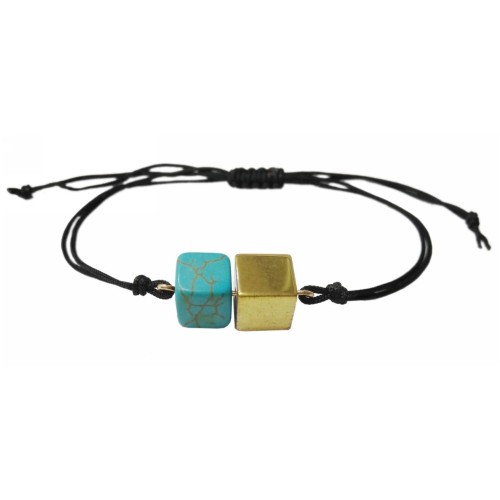 Βραχιόλι Τυρκουάζ με αιματίτη Αντρικό Με τετράγωνες χάντρες από πέτρα τυρκουάζ+χρυσαφί αιματίτη..