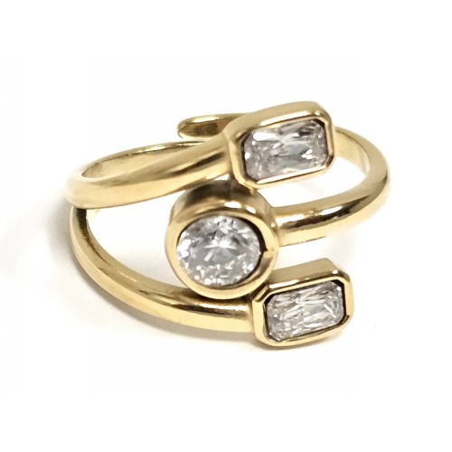 Δαχτυλίδι Ατσάλι 316L, με στρας σε χρώμα Χρυσαφί..