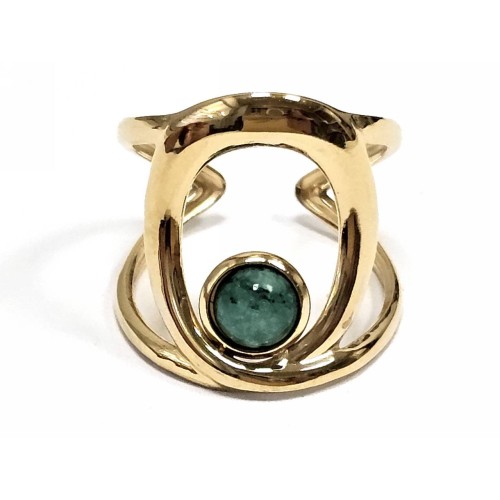 Δαχτυλίδι Πέτρα ατσάλι 316L, με μαλαχίτη σε χρώμα Χρυσαφί..