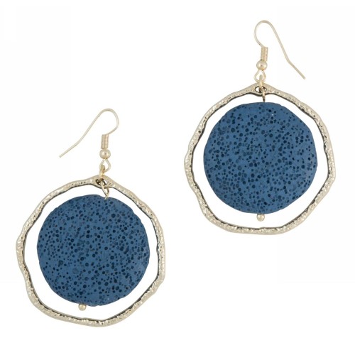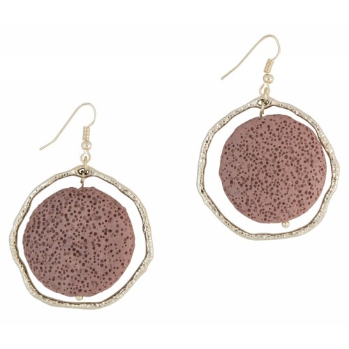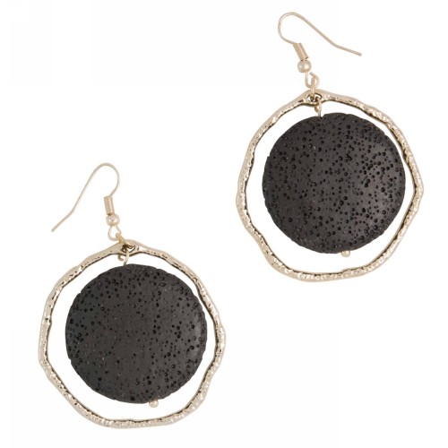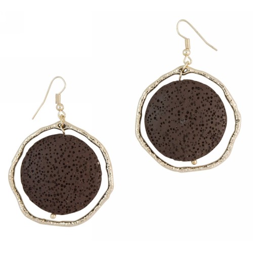 Σκουλαρίκια Με πέτρα Πέτρα Λάβα Με στρόγγυλη λάβα σε στρόγγυλο χρυσαφί μοτίφ..