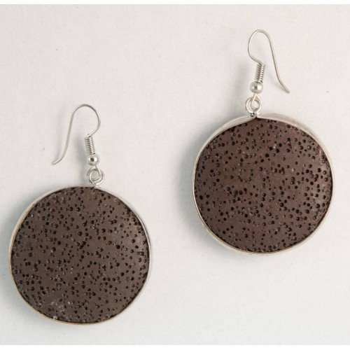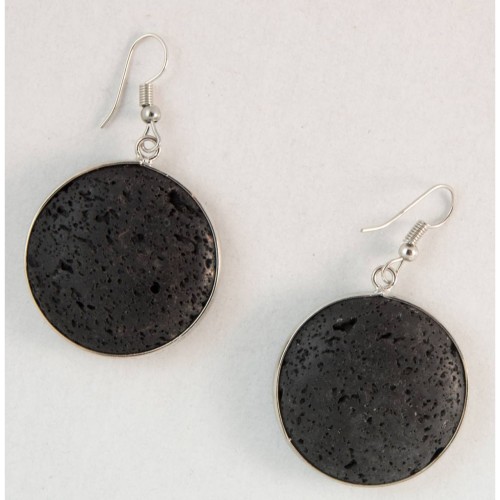 Σκουλαρίκια Με πέτρα Πέτρα Λάβα Με στρόγγυλη πλακέ λάβα και στρόγγυλα ccb ..