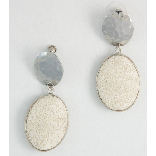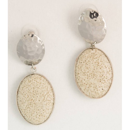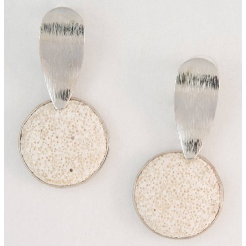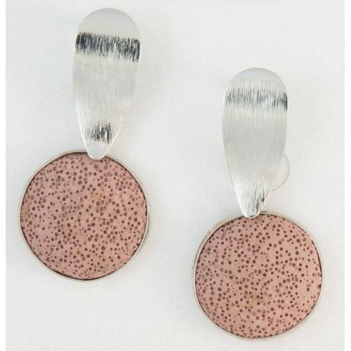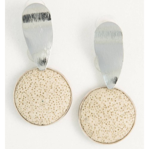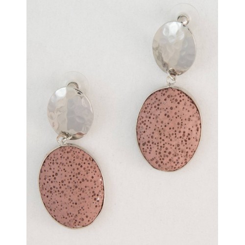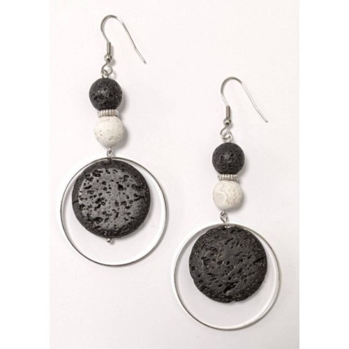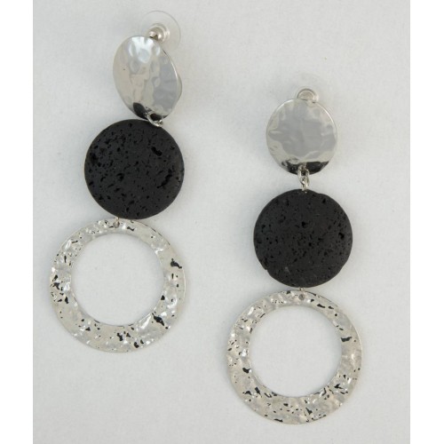 Σκουλαρίκια Με πέτρα Πέτρα Λάβα Λάβα στρόγγυλη εντός στρόγγυλου μεταλλικού μοτίφ με λευκή τεχνητή η..