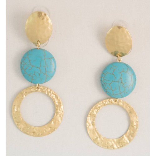 Σκουλαρίκια Με πέτρα Πέτρα Τυρκουάζ Με στρόγγυλη τυρκουάζ + μεταλλικά μοτίφ..