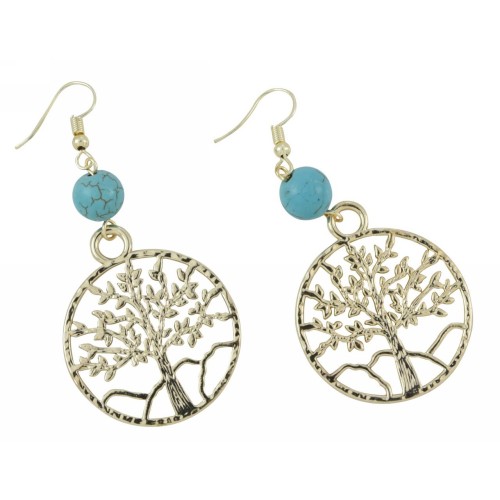 Σκουλαρίκια Με πέτρα Πέτρα Τυρκουάζ Τυρκουάζ με χρυσαφί μοτίφ δέντρο ζωής..