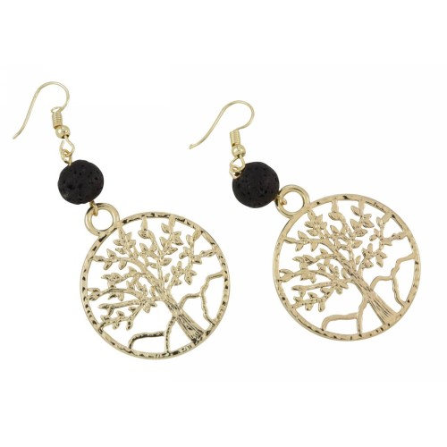 Σκουλαρίκια Με πέτρα Πέτρα Μαύρο - Μαύρο με χρυσαφί μοτίφ δέντρο ζωής..