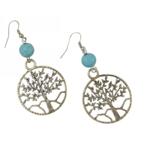 Σκουλαρίκια Με πέτρα Πέτρα Τυρκουάζ Τυρκουάζ με ασημί μοτίφ δέντρο ζωής..