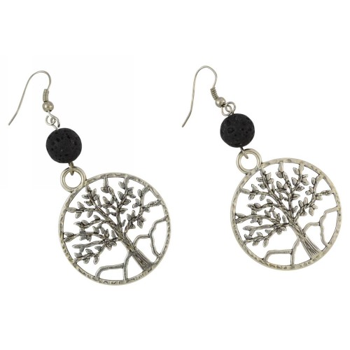 Σκουλαρίκια Με πέτρα Πέτρα Μαύρο Μαύρο με ασημί μοτίφ δέντρο ζωής..