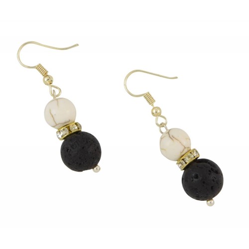 Σκουλαρίκια Με πέτρα Πέτρα Λάβα Λάβα+εκρού, στρόγγυλη με στρας ροδέλα..