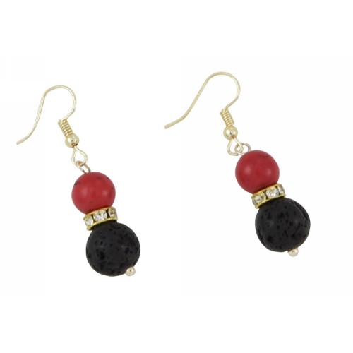 Σκουλαρίκια Με πέτρα Πέτρα Λάβα Λάβα+κόκκινο, στρόγγυλη με στρας ροδέλα..