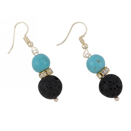 Σκουλαρίκια Με πέτρα Πέτρα Λάβα Λάβα+τιρκουάζ , στρόγγυλη με στρας ροδέλα..