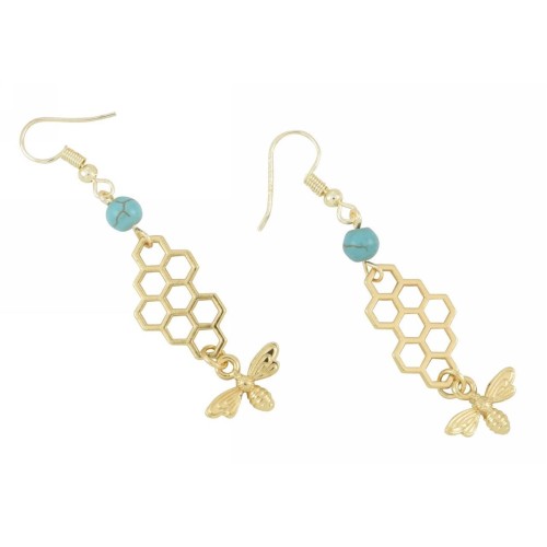 Σκουλαρίκια Με πέτρα Πέτρα Τιρκουάζ Τιρκουάζ με χρυσαφί μεταλλικό μοτίφ μελισσούλα..
