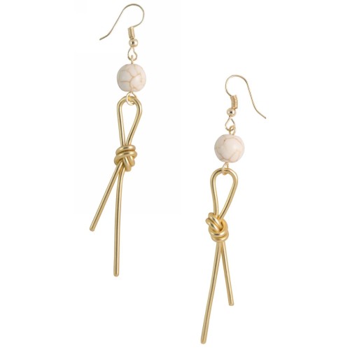 Σκουλαρίκια Με πέτρα Πέτρα Χαολίτης Εκρού με χρυσαφί μεταλλικό μοτίφ σε σχήμα κόμπου..
