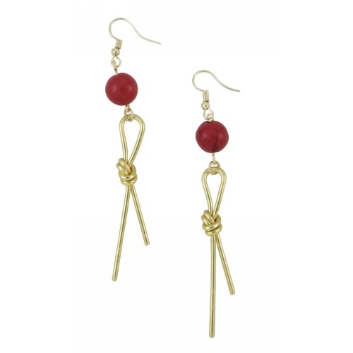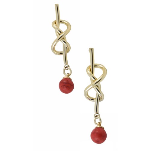 Σκουλαρίκια Με πέτρα Πέτρα Χαολίτης Κόκκινο με χρυσαφί μεταλλικό μοτίφ σε σχήμα κόμπου..